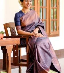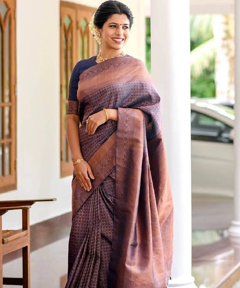 Blue soft silk blend banarasi jacuard work designer party wear saree with unstitched blouse piece