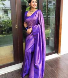 Blue soft silk blend banarasi jacuard work designer party wear saree with unstitched blouse piece