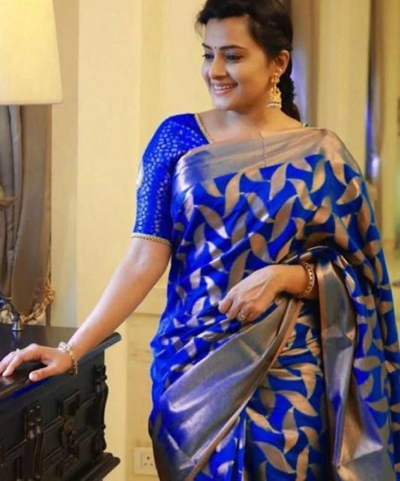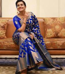 Blue soft silk blend banarasi jacuard work designer party wear saree with unstitched blouse piece