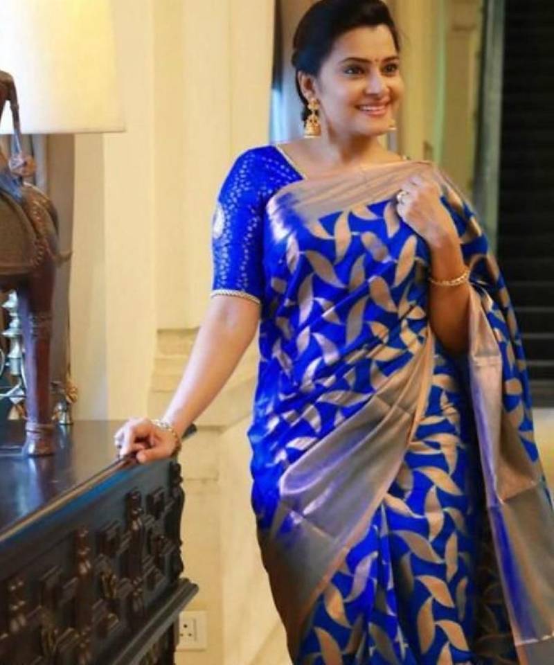 | • | Saree | : | Color- Blue / Fabric- Silk Blend |