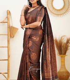 Brown soft silk blend banarasi jacuard work designer party wear saree with unstitched blouse piece
