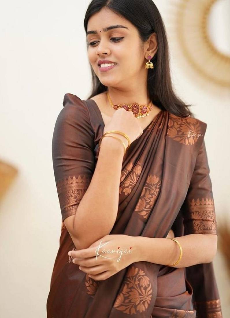| Product Name | Brown Soft Silk Blend Banarasi Jacuard Work Designer Party Wear Saree With Unstitched Blouse Piece | |
