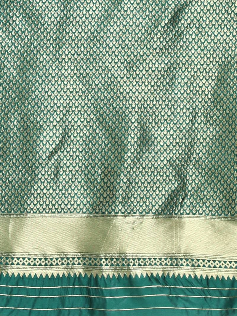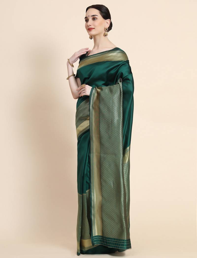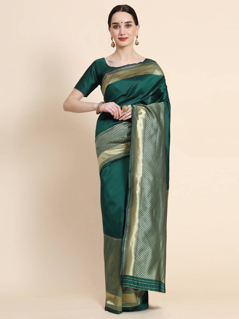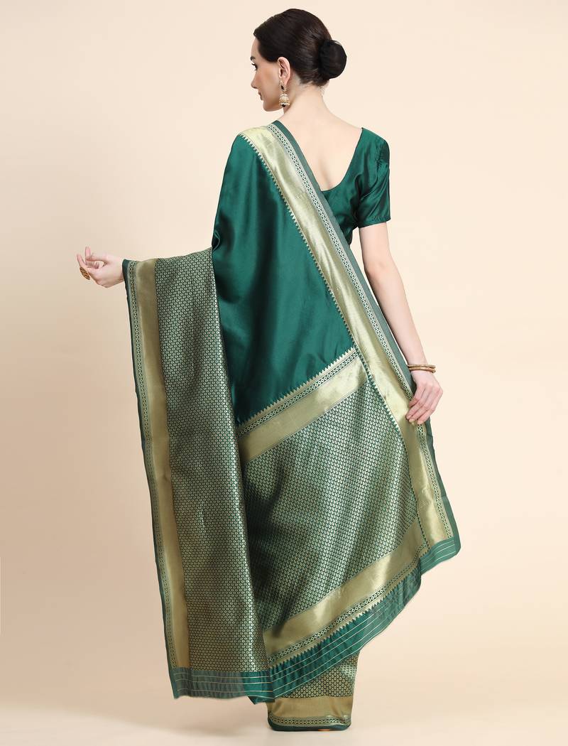 Ghreen soft silk blend banarasi jacuard work designer party wear saree with unstitched blouse piece