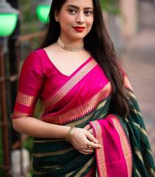 Green pink soft silk blend banarasi jacuard work designer party wear saree with unstitched blouse piece