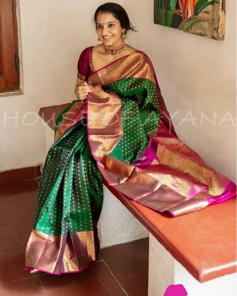 | Product Name | Green Pink Soft Silk Blend Banarasi Jacuard Work Designer Party Wear Saree With Unstitched Blouse Piece | |