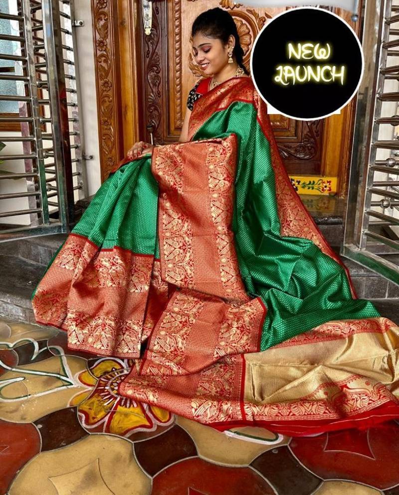 | Product Name | Green Red Soft Silk Blend Banarasi Jacuard Work Designer Party Wear Saree With Unstitched Blouse Piece | |