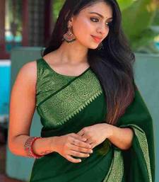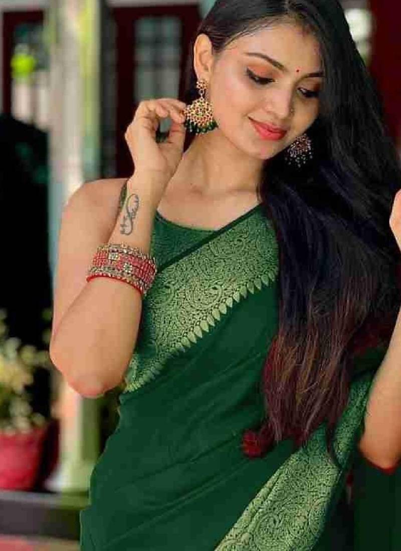 Green soft silk blend banarasi jacuard work designer party wear saree with unstitched blouse piece