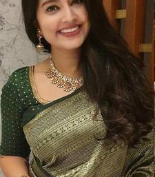 Green soft silk blend banarasi jacuard work designer party wear saree with unstitched blouse piece