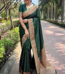 Green soft silk blend banarasi jacuard work designer party wear saree with unstitched blouse piece