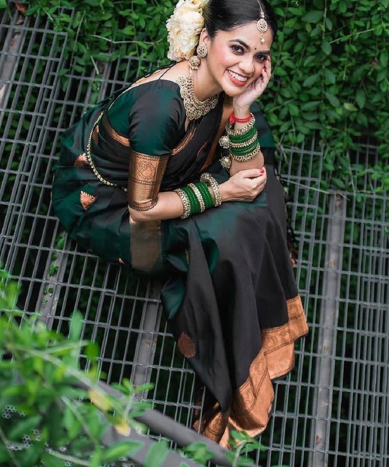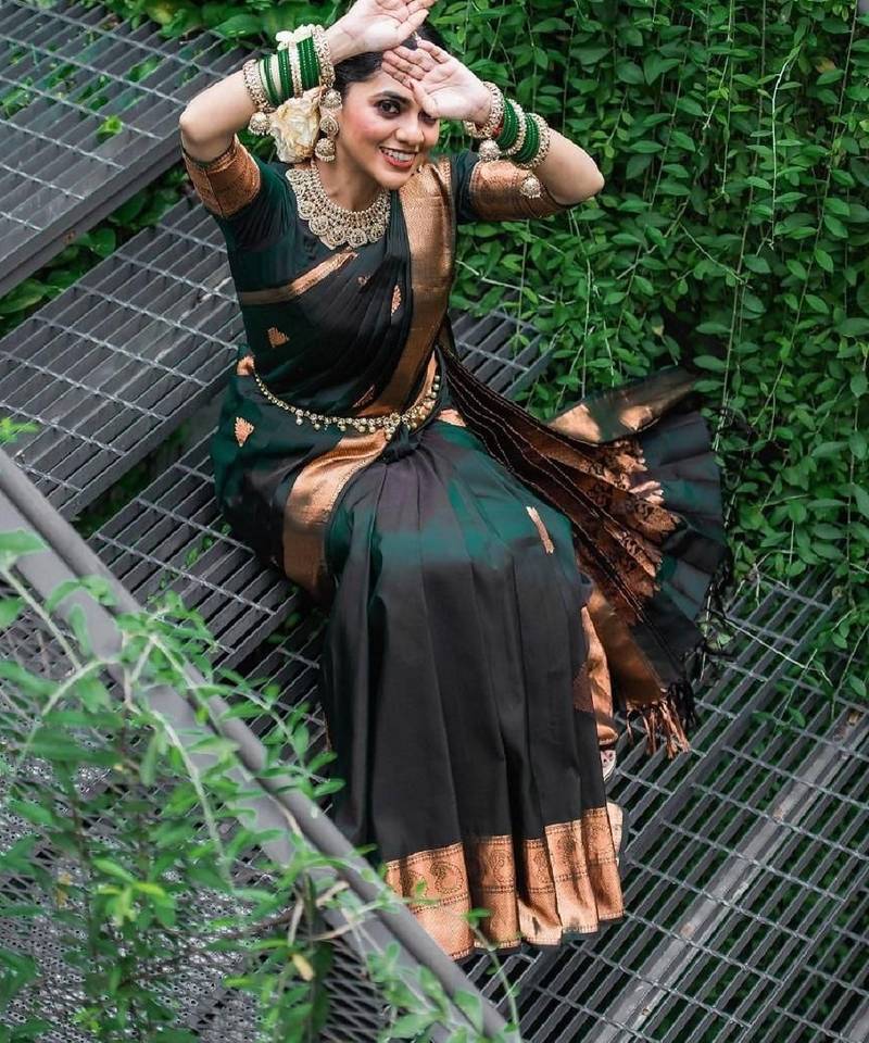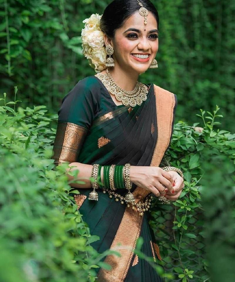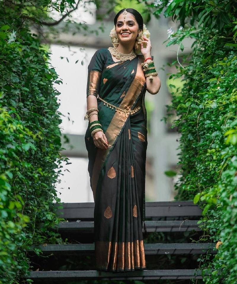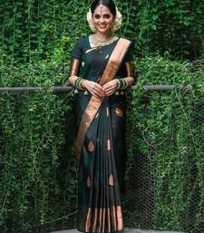 Green soft silk blend banarasi jacuard work designer party wear saree with unstitched blouse piece