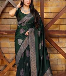 Green soft silk blend banarasi jacuard work designer party wear saree with unstitched blouse piece