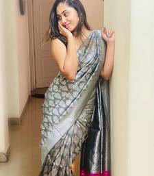 Grey soft silk blend banarasi jacuard work designer party wear saree with unstitched blouse piece