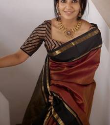 Maroon black soft silk blend banarasi jacuard work designer party wear saree with unstitched blouse piece