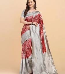 Maroon grey soft silk blend banarasi jacuard work designer party wear saree with unstitched blouse piece