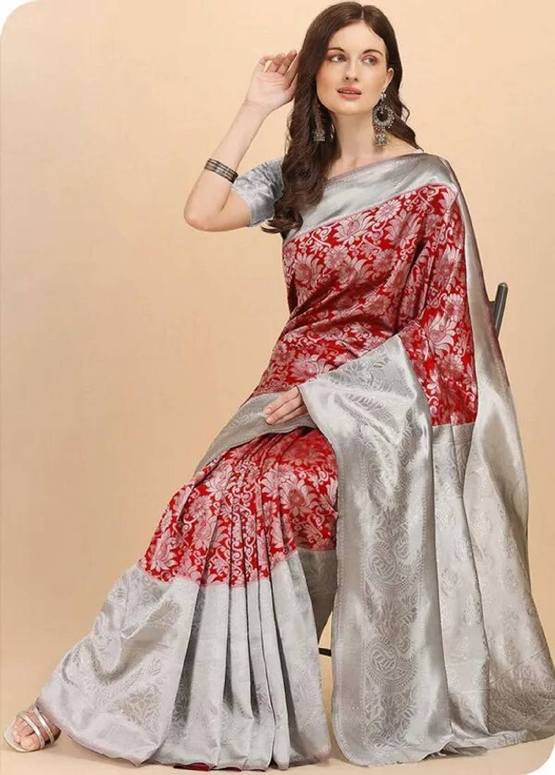 | Product Name | Maroon Grey Soft Silk Blend Banarasi Jacuard Work Designer Party Wear Saree With Unstitched Blouse Piece | |