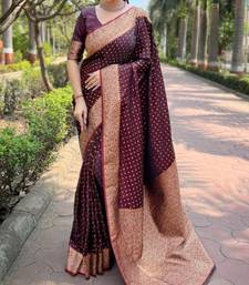 Maroon soft silk blend banarasi jacuard work designer party wear saree with unstitched blouse piece