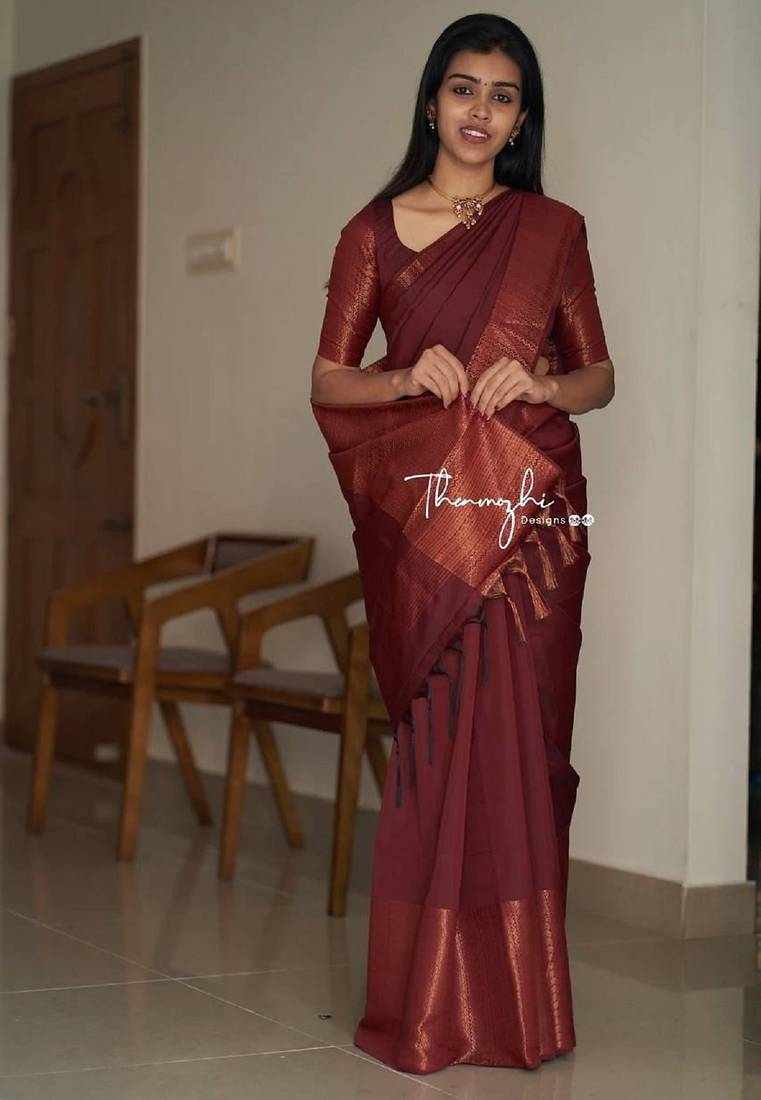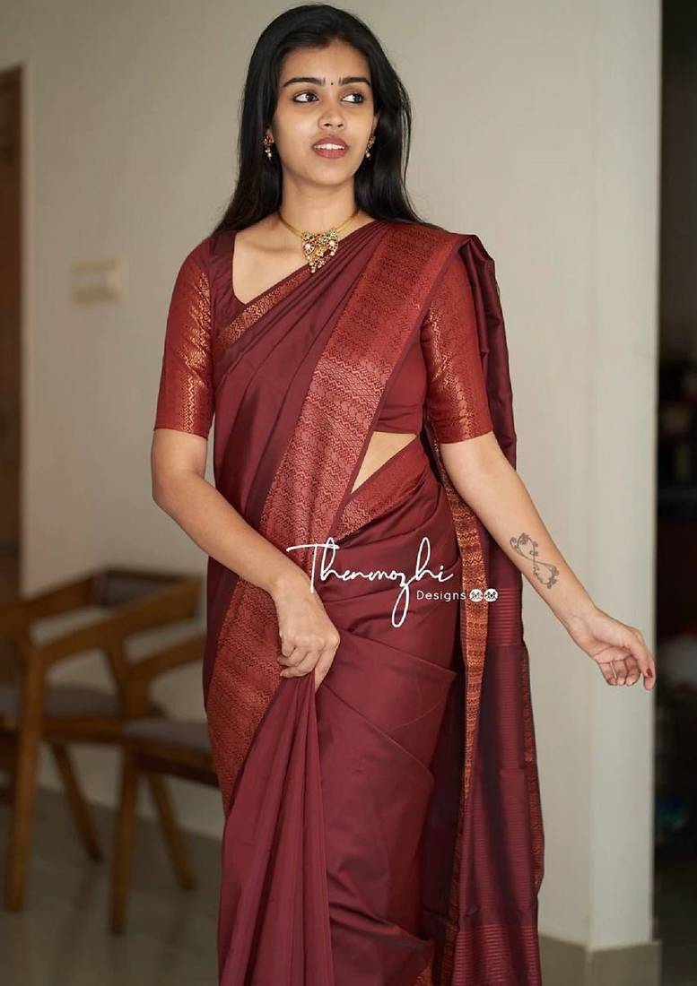 | • | Saree | : | Color- Maroon / Fabric- Silk Blend |