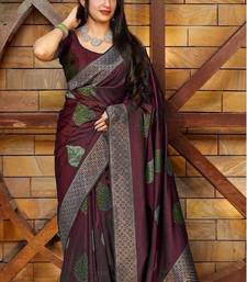 Maroon soft silk blend banarasi jacuard work designer party wear saree with unstitched blouse piece