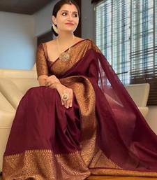 Maroon soft silk blend banarasi jacuard work designer party wear saree with unstitched blouse piece