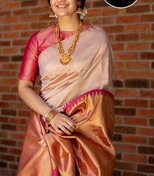 Off white pink soft silk blend banarasi jacuard work designer party wear saree with unstitched blouse piece