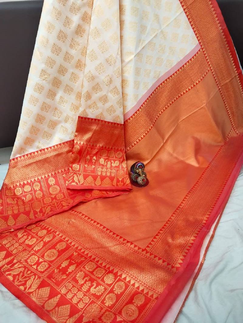 | Product Name | Off White Red Soft Silk Blend Banarasi Jacuard Work Designer Party Wear Saree With Unstitched Blouse Piece | |