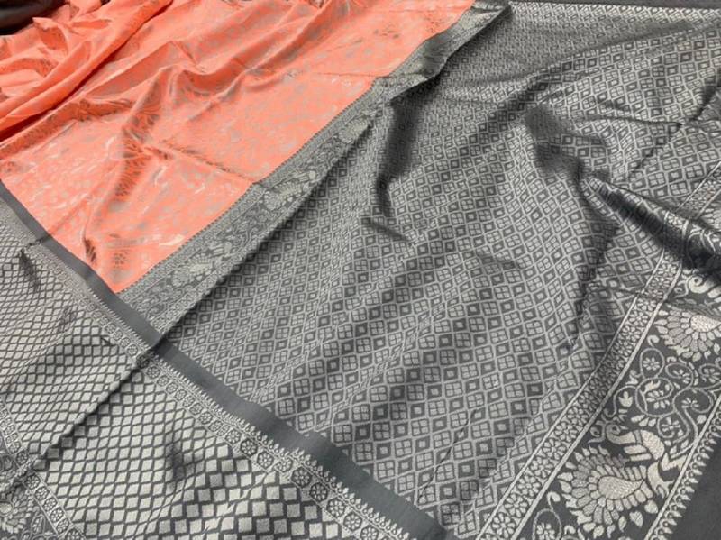 | Product Name | Peach Grey Soft Silk Blend Banarasi Jacuard Work Designer Party Wear Saree With Unstitched Blouse Piece | |