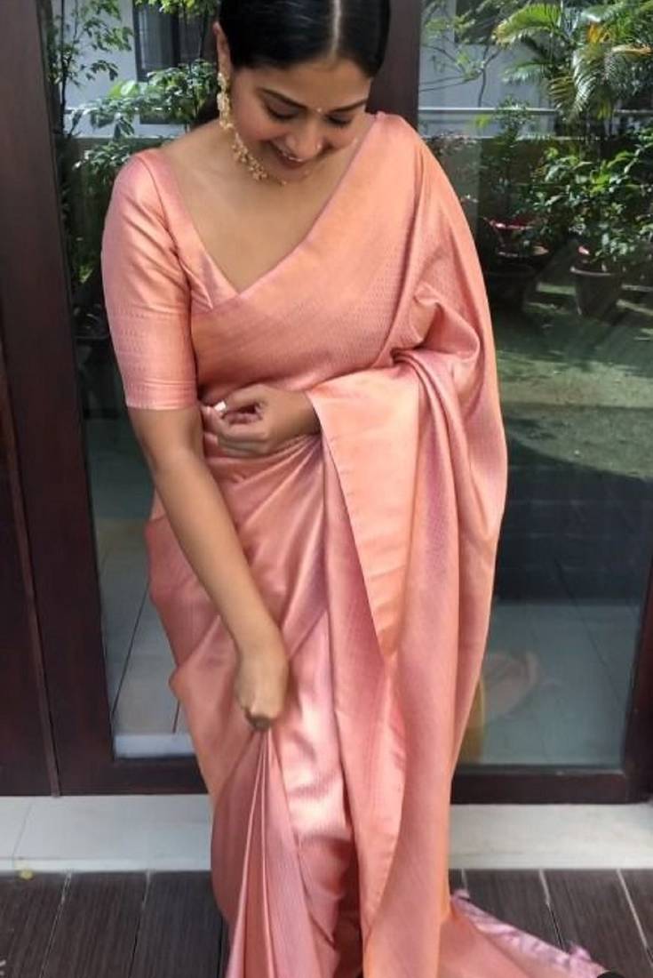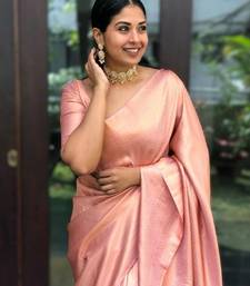 Peach soft silk blend banarasi jacuard work designer party wear saree with unstitched blouse piece