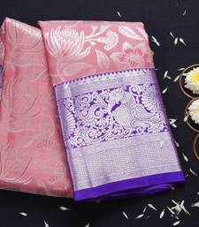 Pink lavender soft silk blend banarasi jacuard work designer party wear saree with unstitched blouse piece