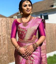 Pink soft silk blend banarasi jacuard work designer party wear saree with unstitched blouse piece