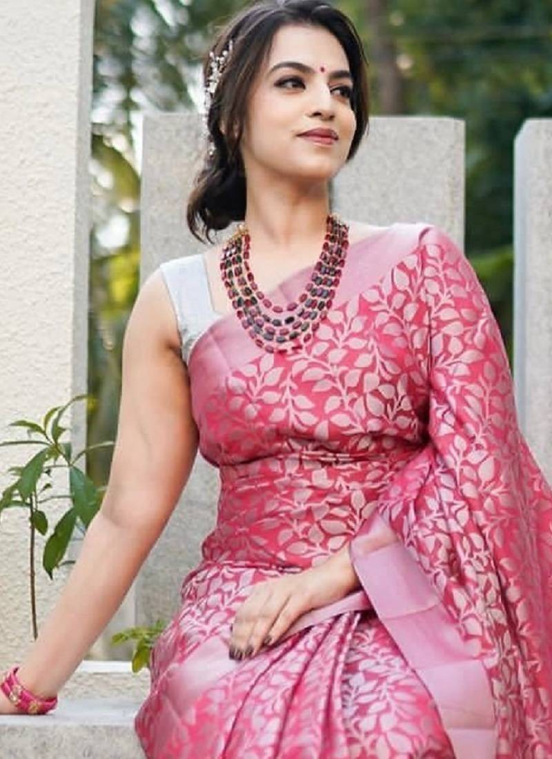 | Product Name | Pink Soft Silk Blend Banarasi Jacuard Work Designer Party Wear Saree With Unstitched Blouse Piece | |