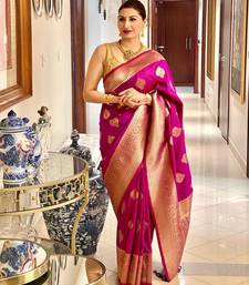 Pink soft silk blend banarasi jacuard work designer party wear saree with unstitched blouse piece