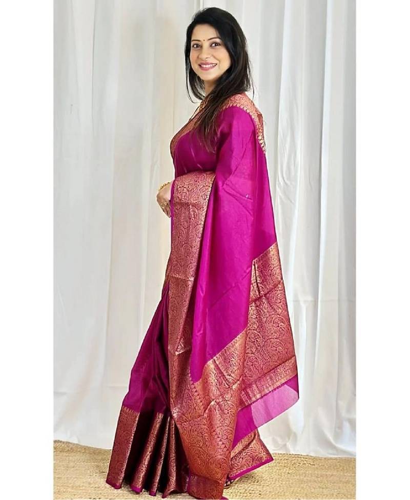 Pink soft silk blend banarasi jacuard work designer party wear saree with unstitched blouse piece