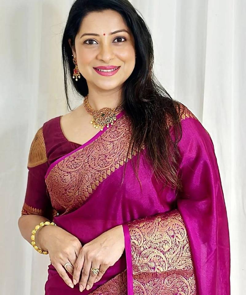 | • | Saree | : | Color- Pink / Fabric- Silk Blend |