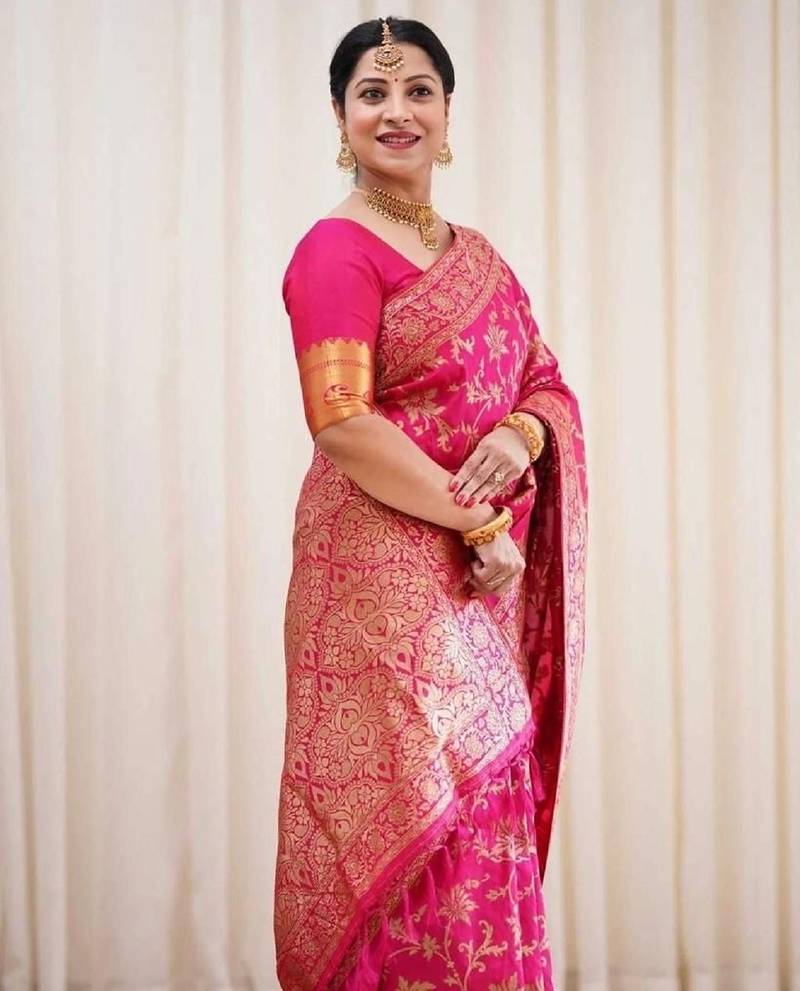 Pink soft silk blend banarasi jacuard work designer party wear saree with unstitched blouse piece