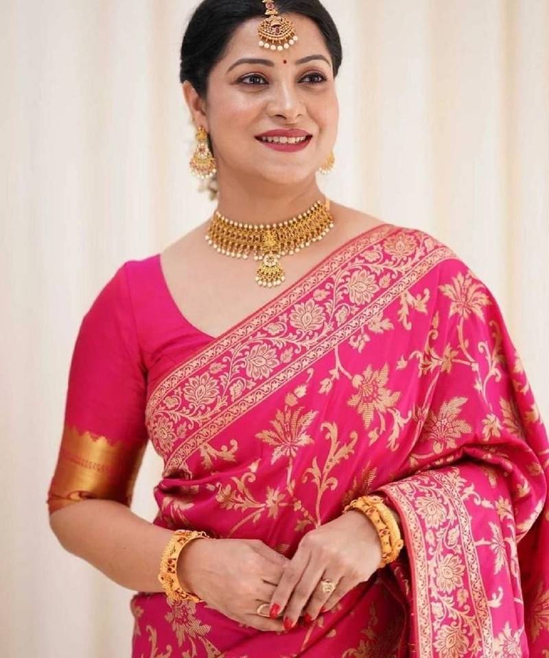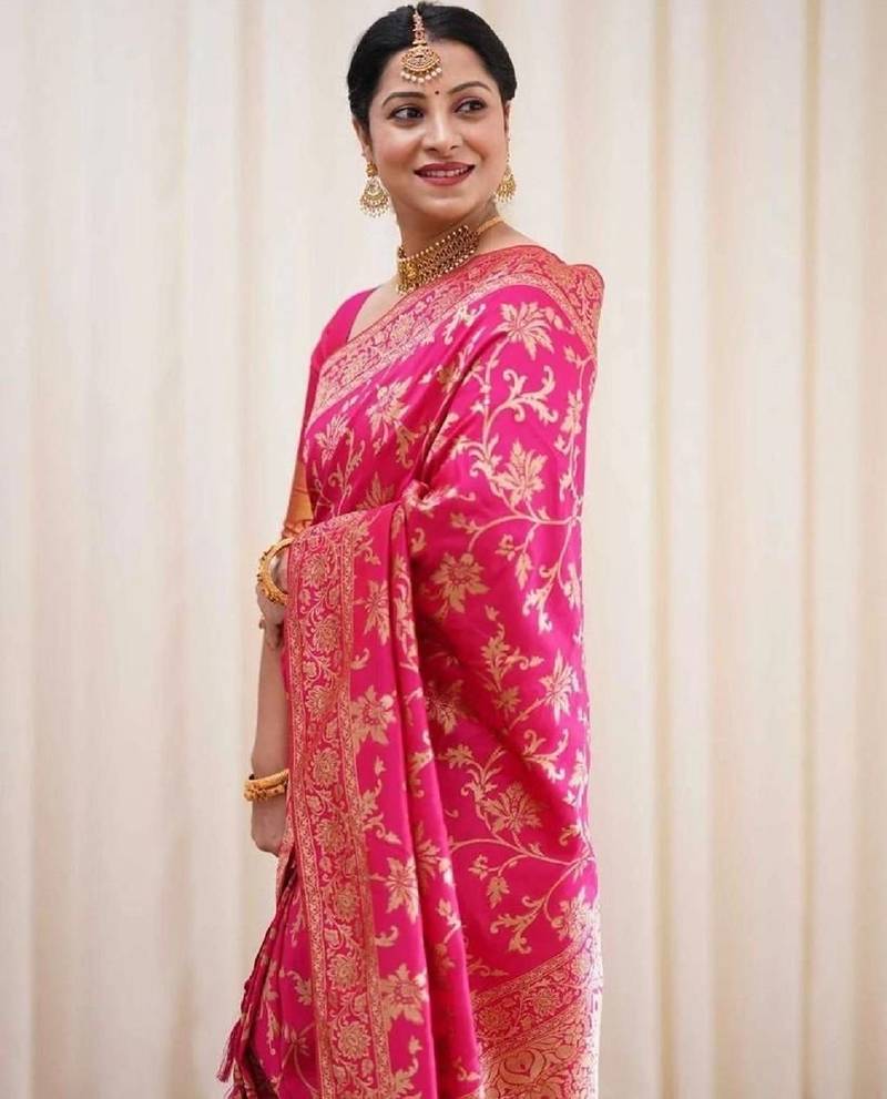 | Product Name | Pink Soft Silk Blend Banarasi Jacuard Work Designer Party Wear Saree With Unstitched Blouse Piece | |