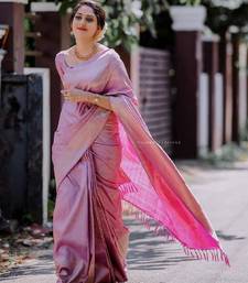 Pink soft silk blend banarasi jacuard work designer party wear saree with unstitched blouse piece