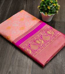 Pink soft silk blend banarasi jacuard work designer party wear saree with unstitched blouse piece