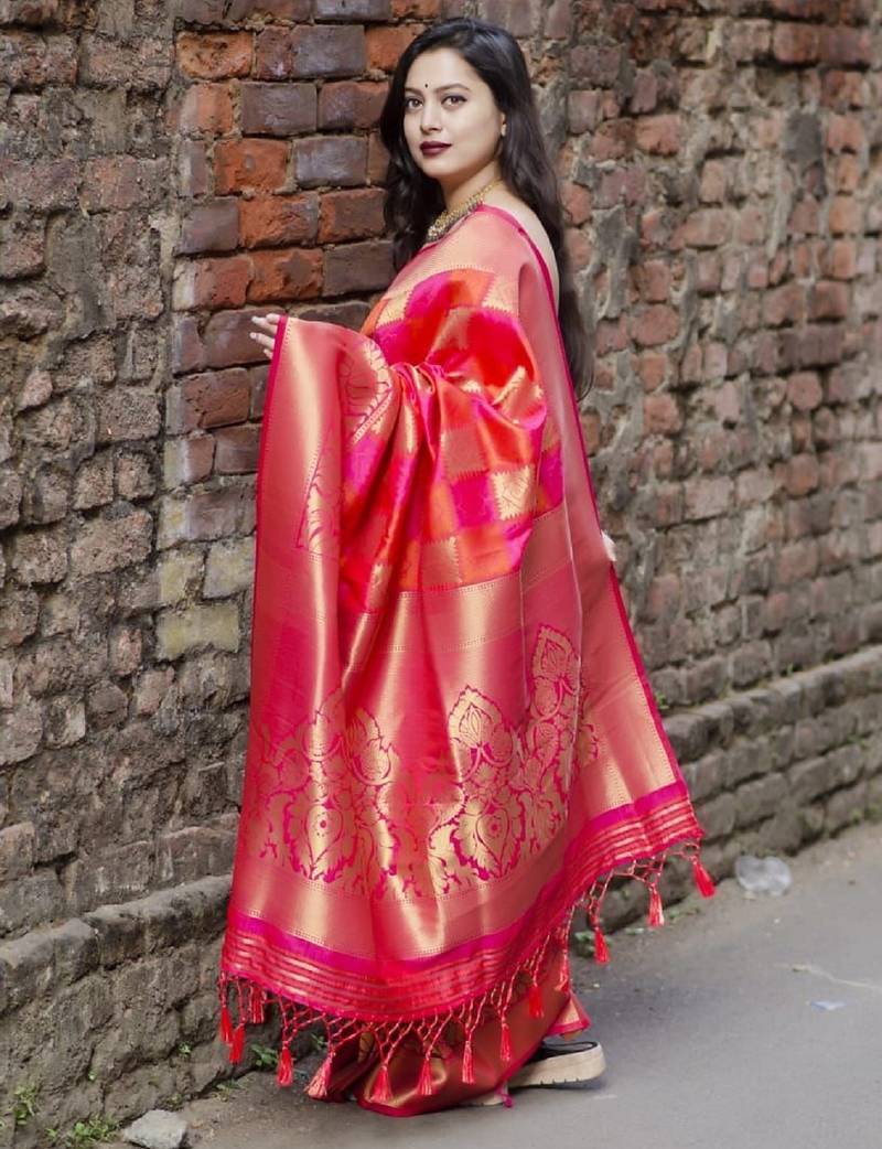 | Product Name | Pink Soft Silk Blend Banarasi Jacuard Work Designer Party Wear Saree With Unstitched Blouse Piece | |