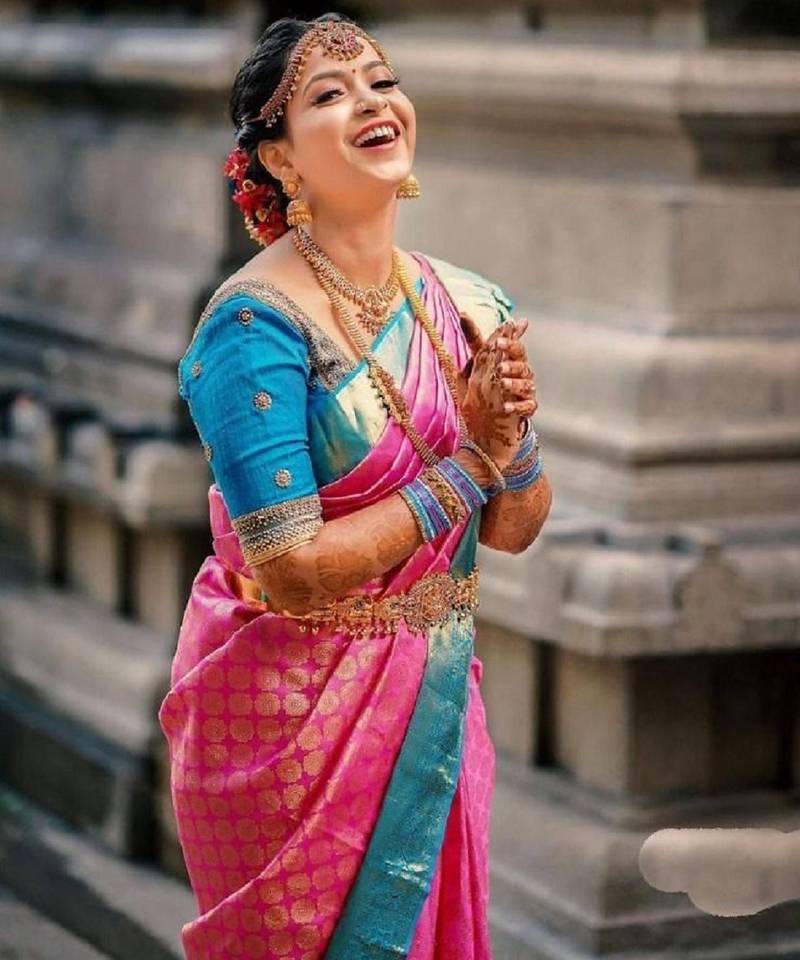 | • | Saree | : | Color- Pink / Fabric- Silk Blend |