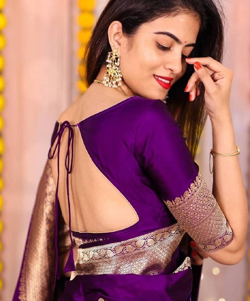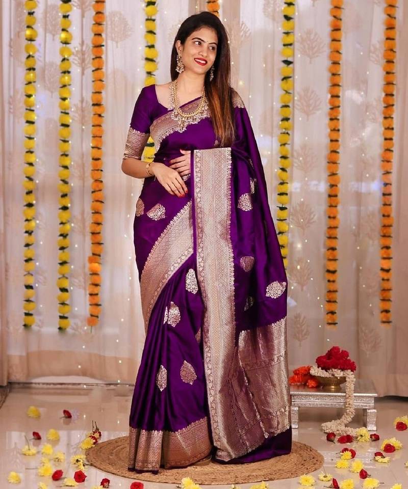 | Product Name | Purple Soft Silk Blend Banarasi Jacuard Work Designer Party Wear Saree With Unstitched Blouse Piece | |