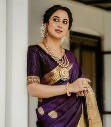 Purple soft silk blend banarasi jacuard work designer saree with blouse
