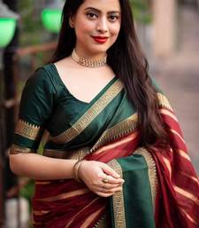 Red green soft silk blend banarasi jacuard work designer party wear saree with unstitched blouse piece