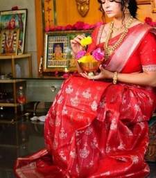 Red soft silk blend banarasi jacuard work designer party wear saree with unstitched blouse piece