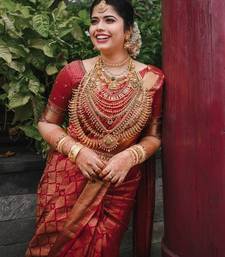 Red soft silk blend banarasi jacuard work designer party wear saree with unstitched blouse piece