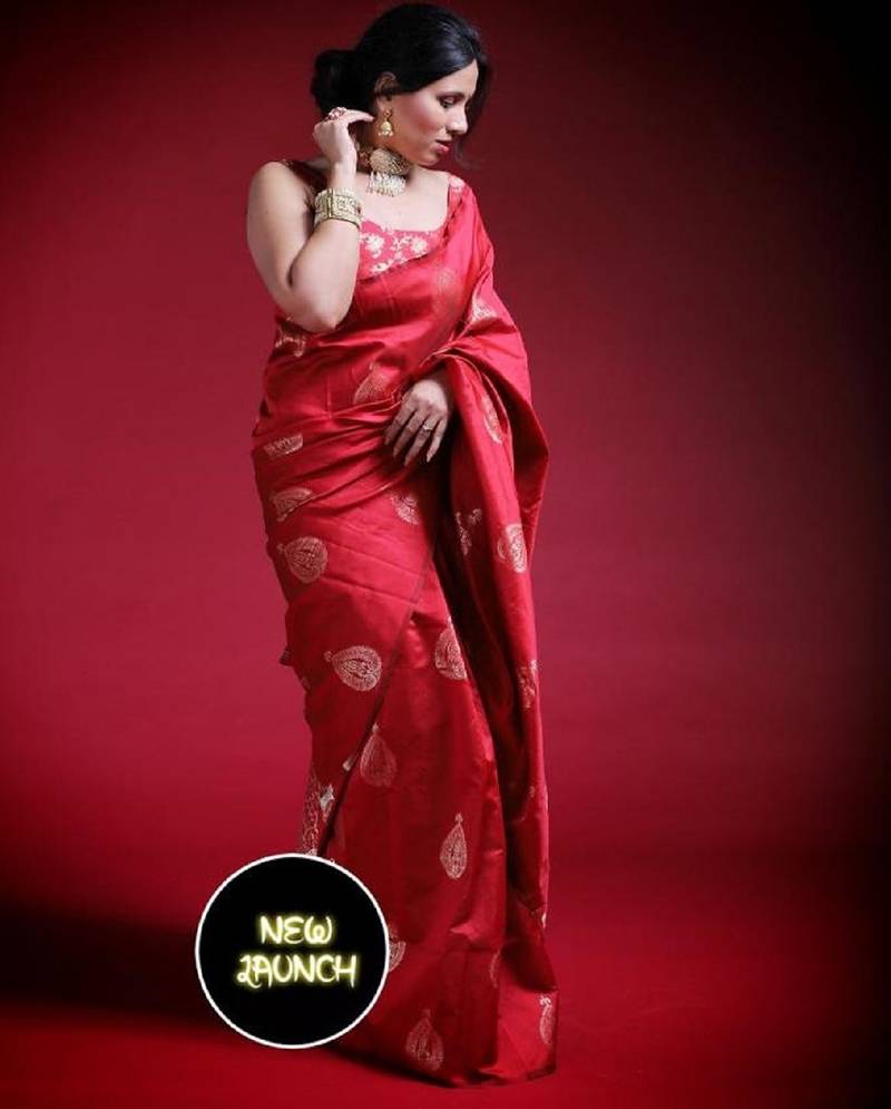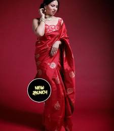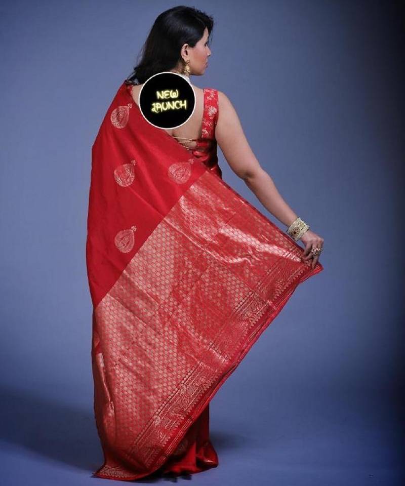 Red soft silk blend banarasi jacuard work designer party wear saree with unstitched blouse piece