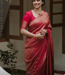 Red soft silk blend banarasi jacuard work designer party wear saree with unstitched blouse piece