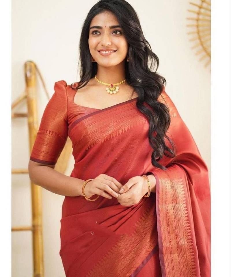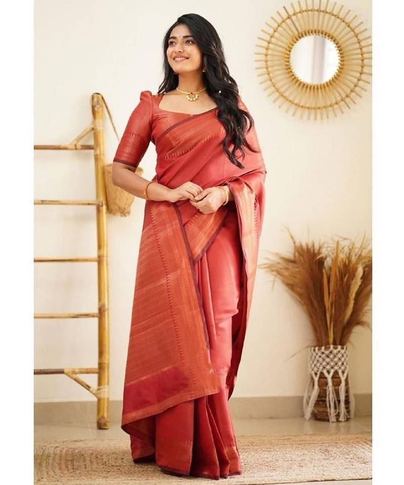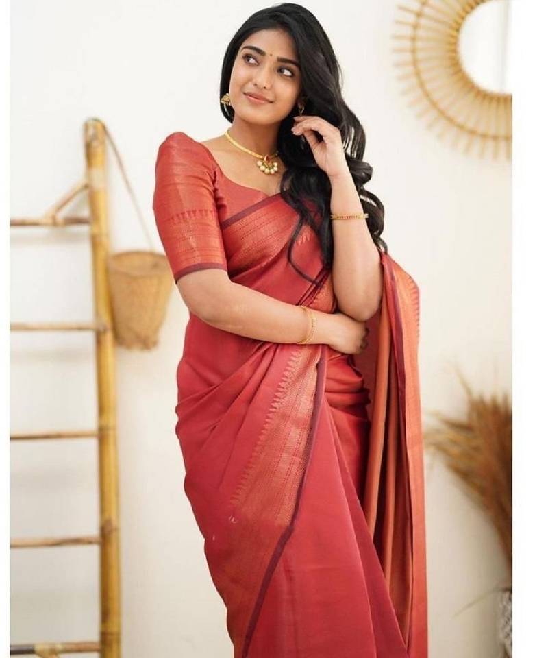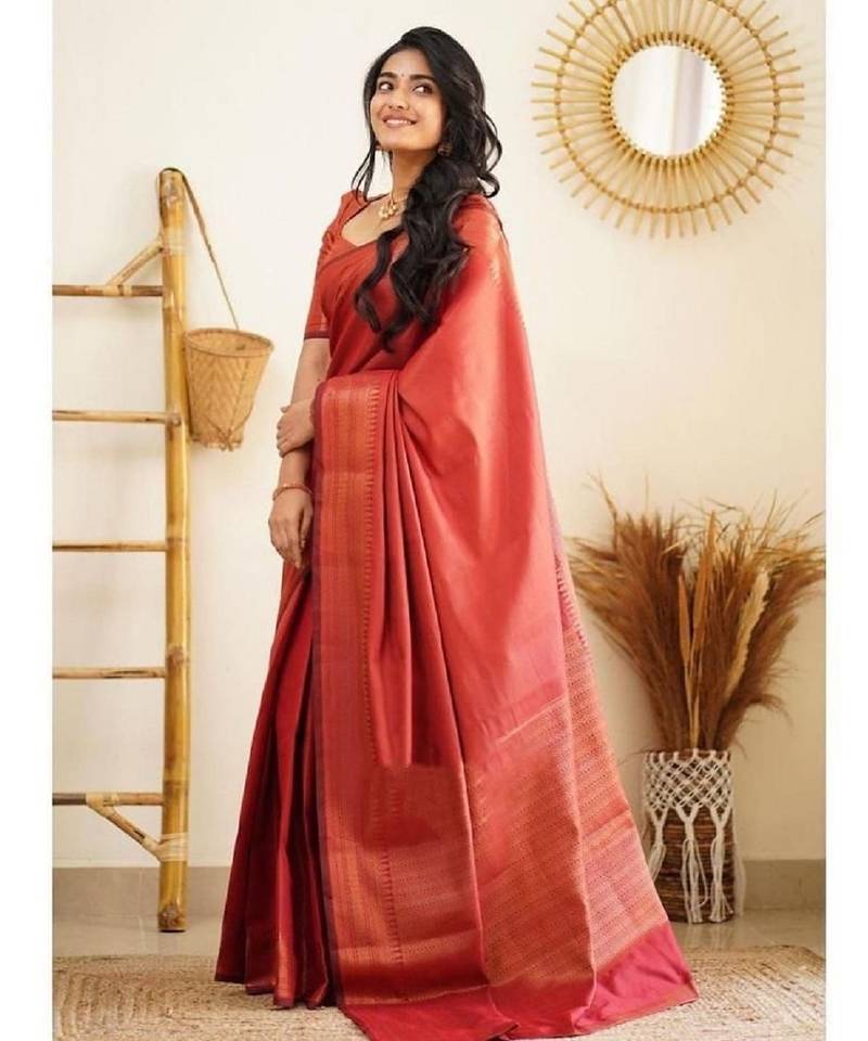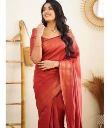 Red soft silk blend banarasi jacuard work designer party wear saree with unstitched blouse piece