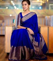 Royal blue soft silk blend banarasi jacuard work designer party wear saree with unstitched blouse piece