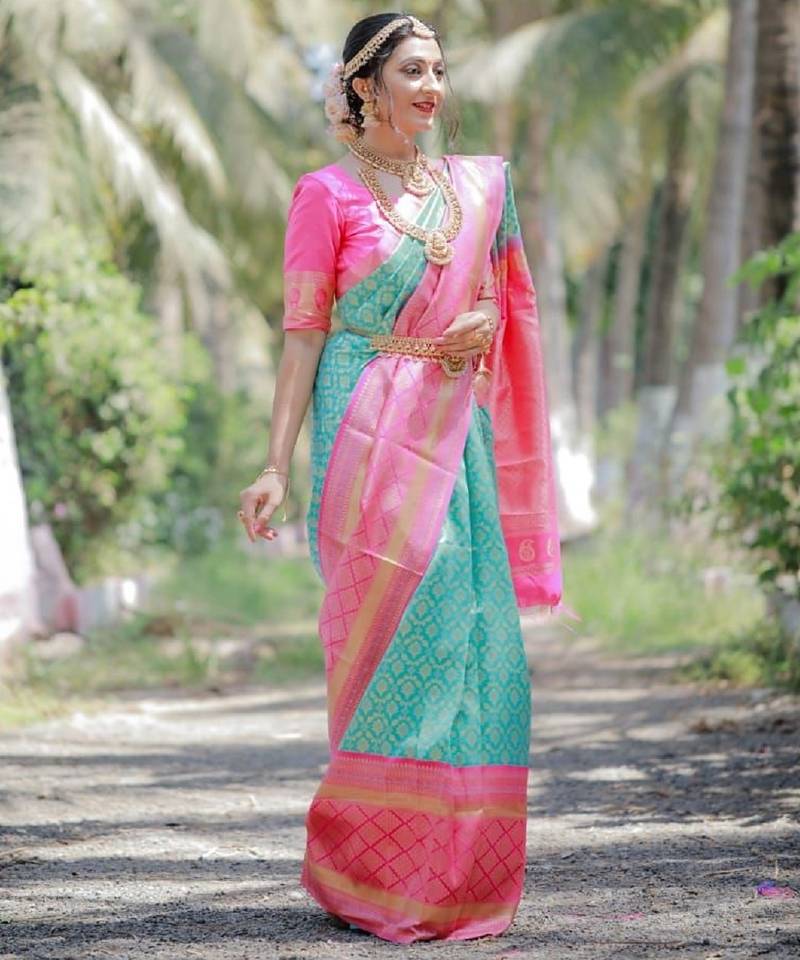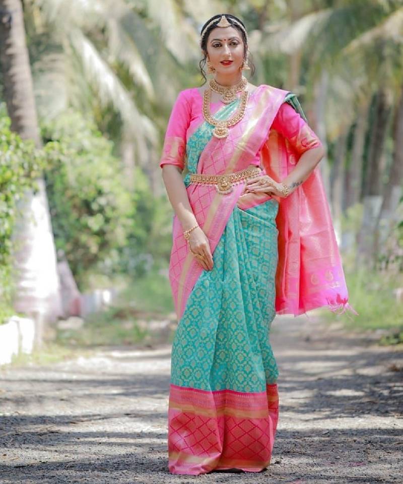 | Product Name | Sky Blue Pink Soft Silk Blend Banarasi Jacuard Work Designer Party Wear Saree With Unstitched Blouse Piece | |