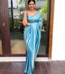 Sky blue soft silk blend banarasi jacuard work designer party wear saree with unstitched blouse piece